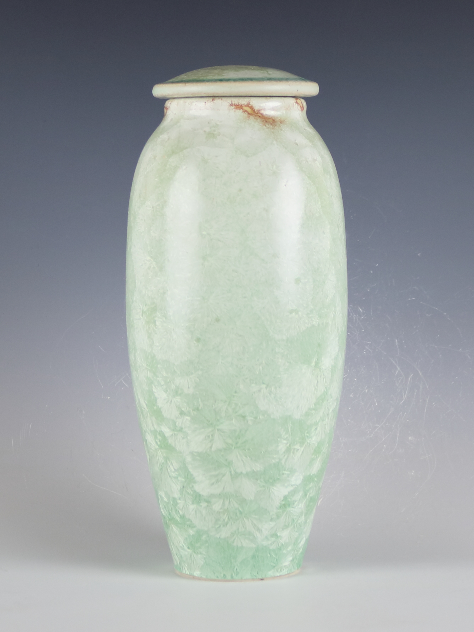 Bright green crystals all over. 3.375" w x 8" h, 37 cu. in.